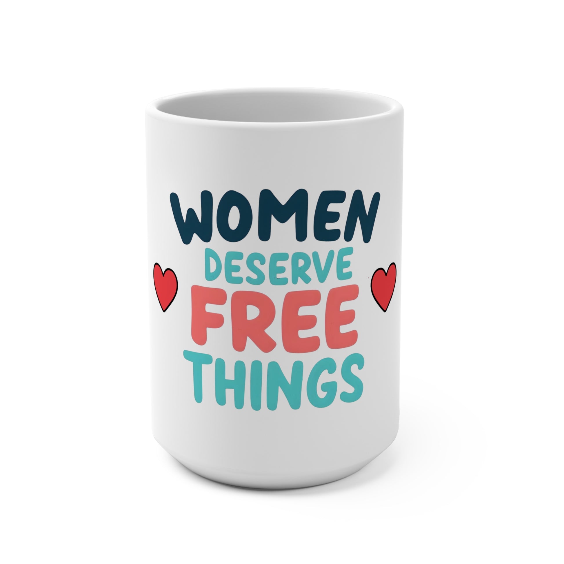 📗 Keywords - Women Deserve Free Things - 15oz Mug — Feminist Coffee Cup, Gift for Her